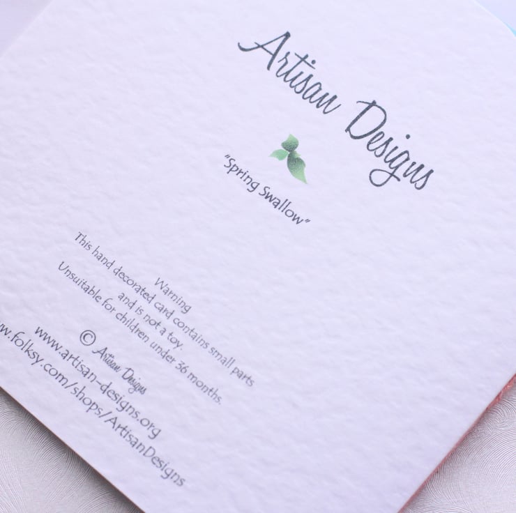 We lovingly design and individually handcraft each greetings card from start to finish. We also use our own illustrations and photographs. All of our embellishments are unique to us and are designed and carefully handcrafted from scratch too, so there may be slight variations between embellishments of the same design, making each one unique!