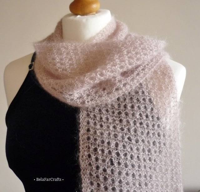 The luxurious yarn I used makes it as light as air, but my open stitches pattern throughout makes this item even lighter.