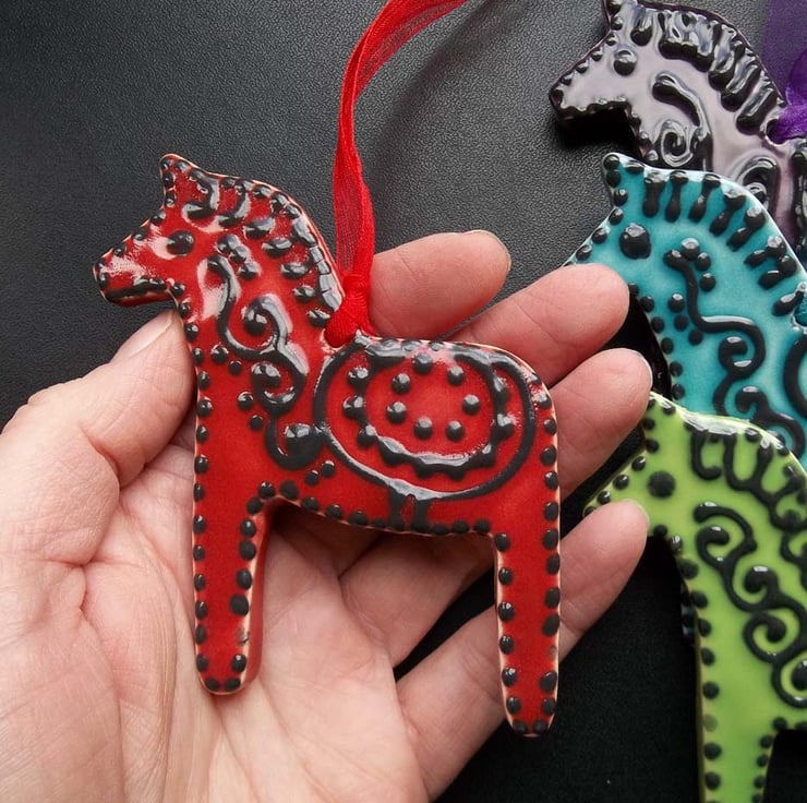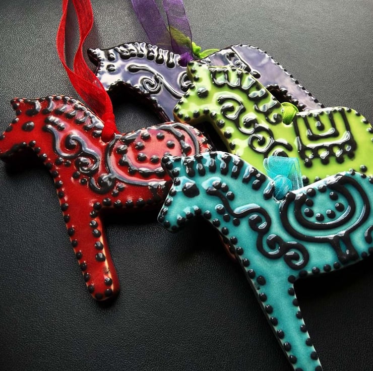 This bold and bright set of folk art horses are fun and vibrant and certain to brighten up any room.