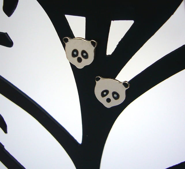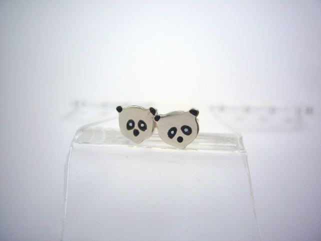These are simple, cute panda heads, hand cut out of 1mm thick sterling silver. They are approximately 0.8cm wide and high and have features painted on with enamel & acrylic paint. Sterling silver ear pins are soldered to the back.
