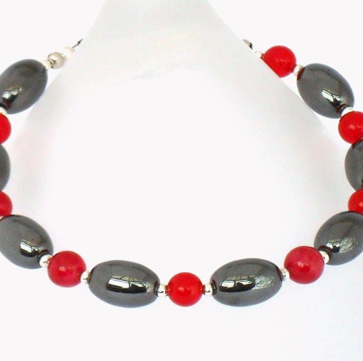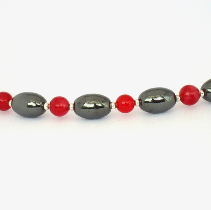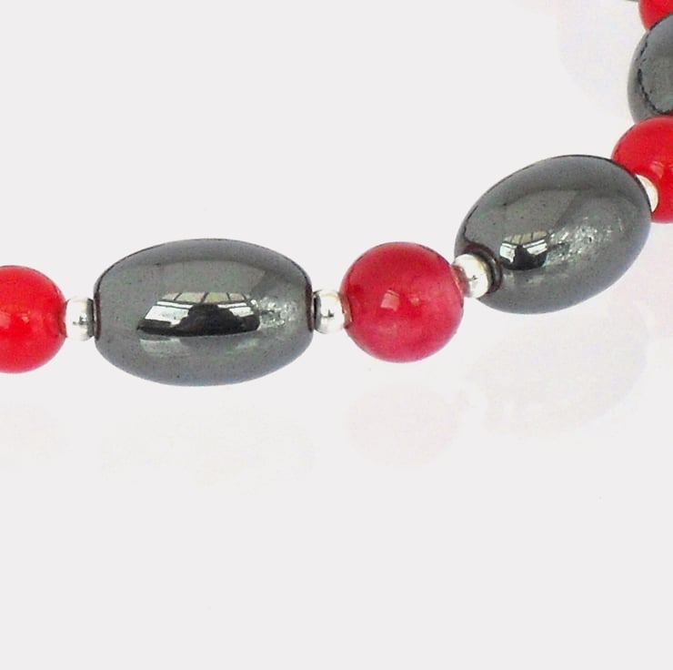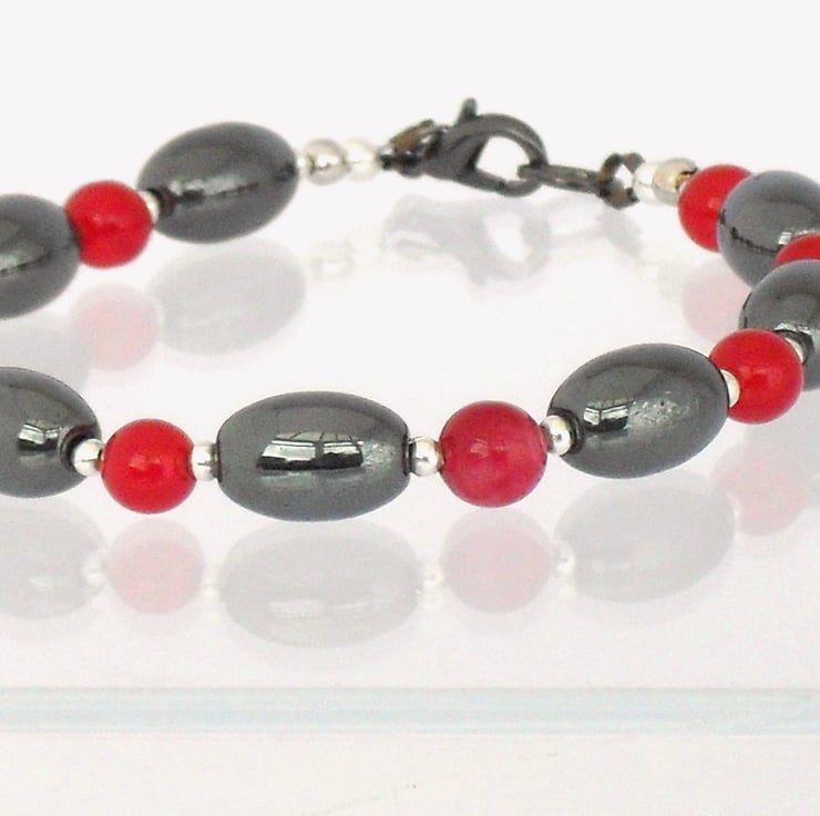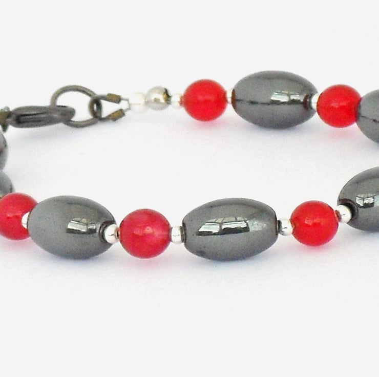 I love the brightness of this red jade, and it looks great with highly polished and reflective hematite.