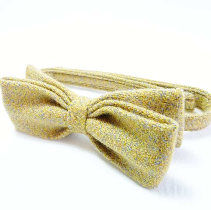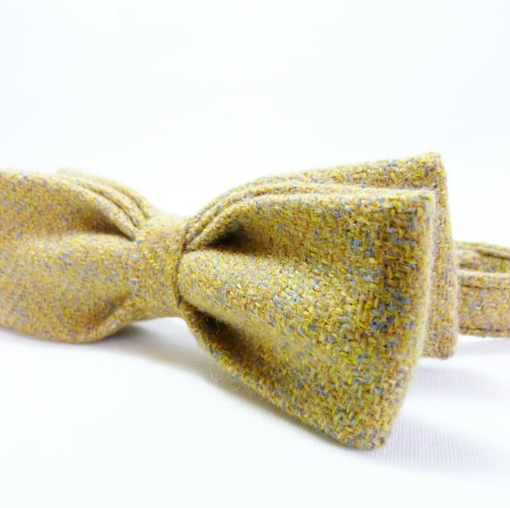Bow ties are cool, fact. A super awesome mens accessory handmade from the finest Irish tweed fabric in mustard yellow. Unlike most pretied bows this tie features a double bow and gives a true impression of a one piece bow tie. A simple velcro fastening makes it incredibly easy to fit and wear.