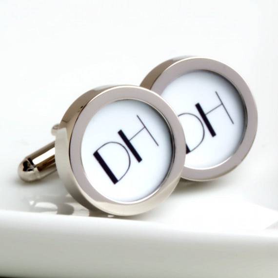 Monogrammed cufflinks in a 1920s style with 2 initials with black letters on a white background. Also available with white letters on a black background, let me know if you would prefer this option. Monogram cufflinks make a very personal gift for someone special and never go out of style. These cufflinks are also a lovely choice for members of your wedding party.