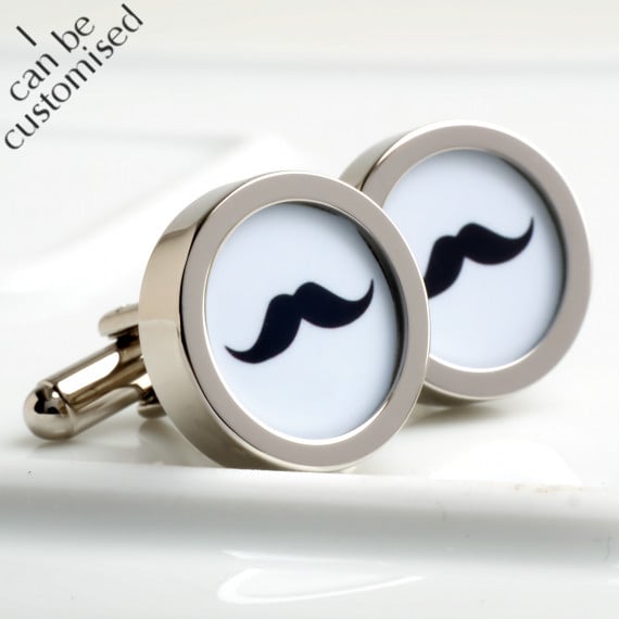 Big black mustache cufflinks with a white background, can also made with a black background or made in your choice of colour (for instance in your wedding colours).
