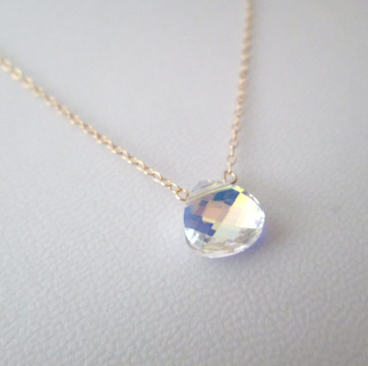 This Swarovski crystal has been suspended from this very dainty 14k Gold Filled Chain which is approx 17'' in length.