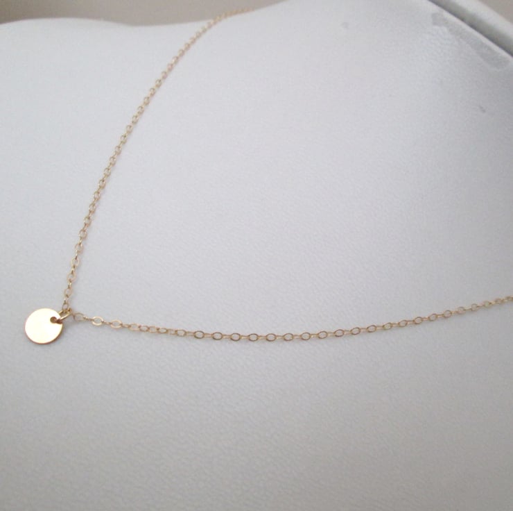 Teeny tiny 6mm round gold filled 'dot' has been left alone to sweep along a 17 inch gold filled dainty chain.