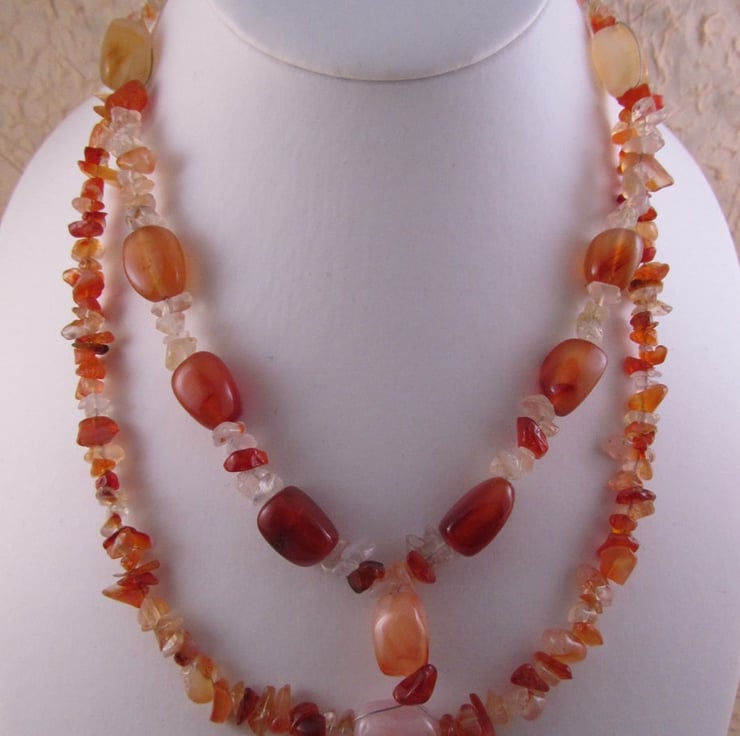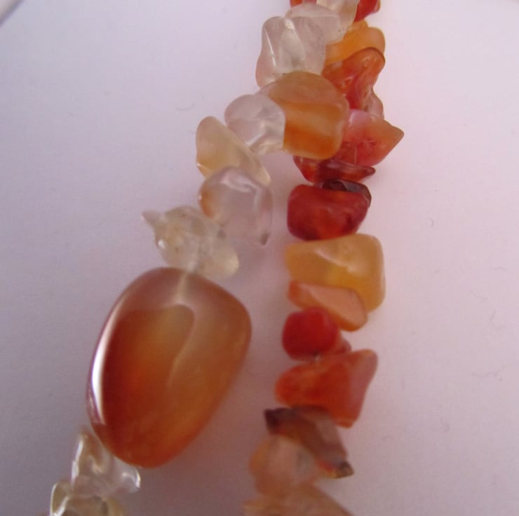 This is a beautiful orange and white carnelian short necklace. It is made with real Carnelian gemstone beads and chips. The graduation of oranges and whites make it a very versatile piece. (It looks great with the matching earrings that are available to buy seperately)