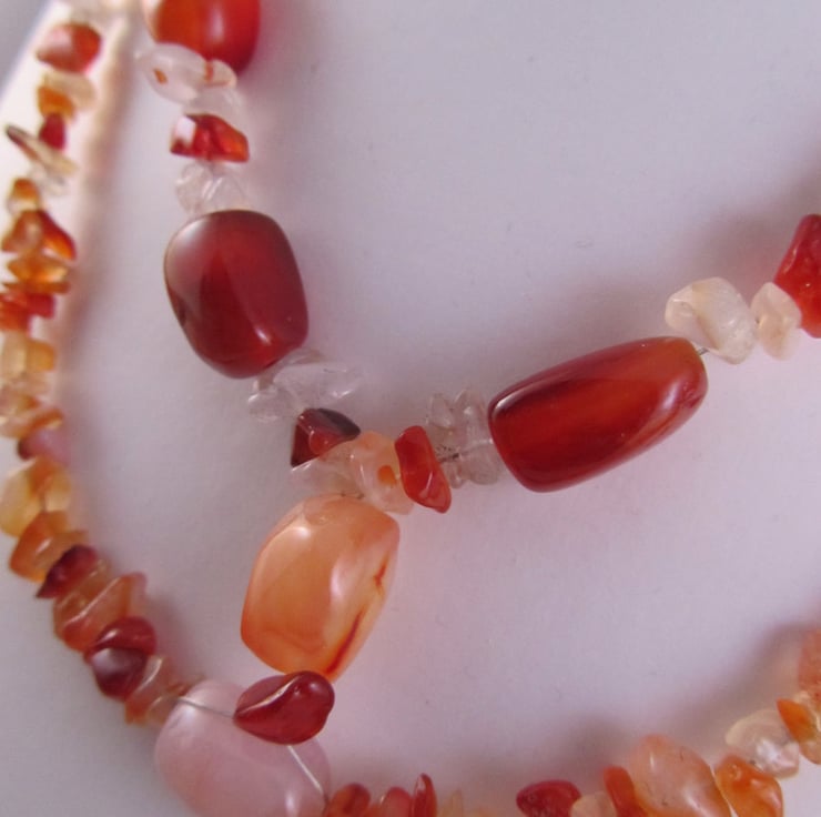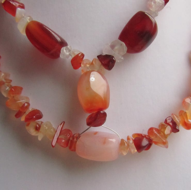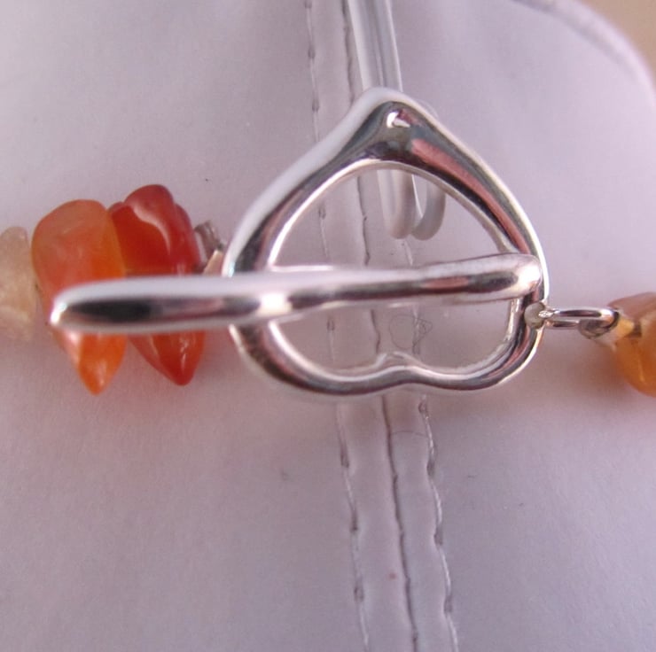 I was watching an Edwardian period drama on TV, and got inspired by the jewellery. I decided to have a go at the style but wanted to give it a modern twist. The Carnelian gemstones and chips really make the design bright and beautiful. The heart clasp is just a pretty finishing touch.