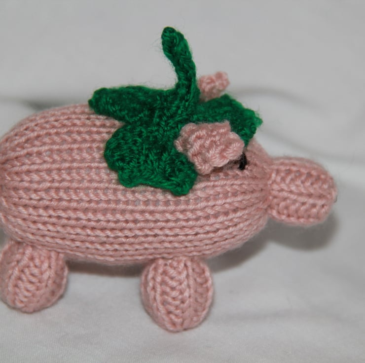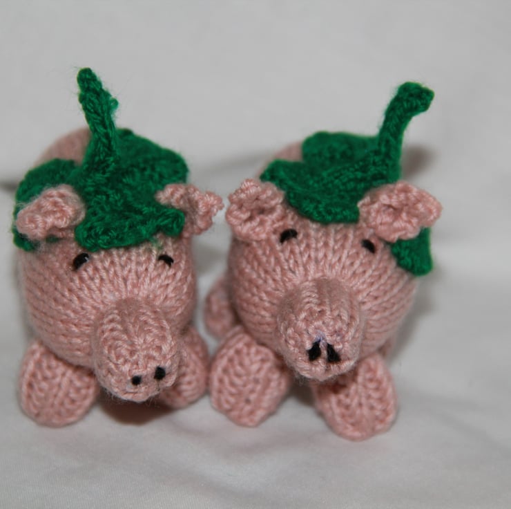 Patrick is a small cheeky Tamworth piglet, knitted with a shamrock hat to celebrate St Patrick’s Day. Hand knitted from my original design with love and care, he stands 6 cm tall and is 10 cm from snout to his wiggly tail. Patrick has no sharp or loose parts, everything is stitched so he can be given to children (as long as they don't pull his tail too hard!!). Because each Patrick is knitted individually, your piglet will be unique. Patrick loves sitting on bookshelves, desks, window sills and other places where he can be part of your family. All profits from my piggies will go to Charity.