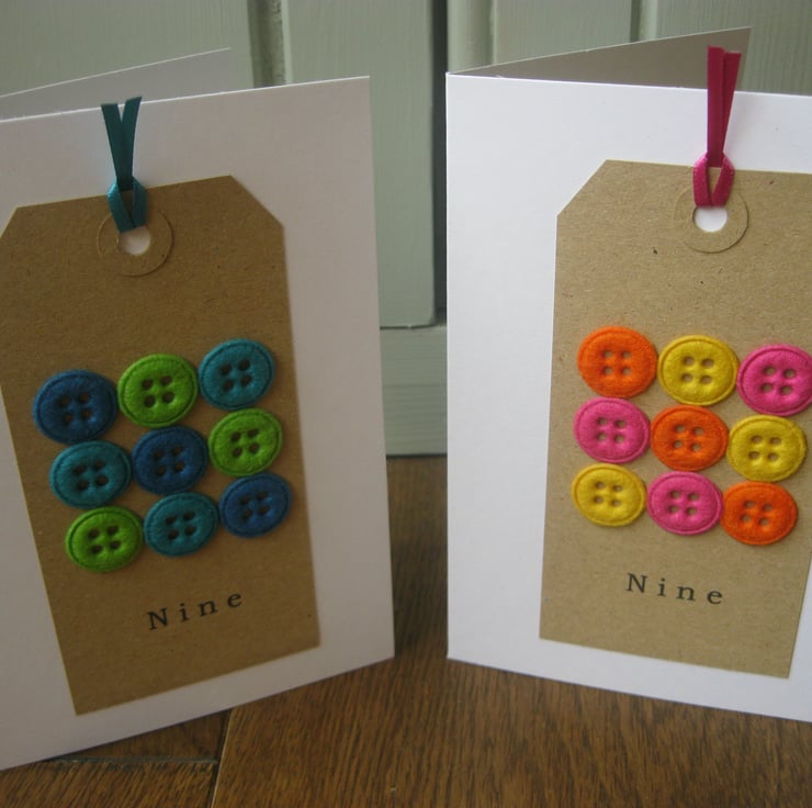Have your child count their age in buttons with these lovely hand made birthday cards.