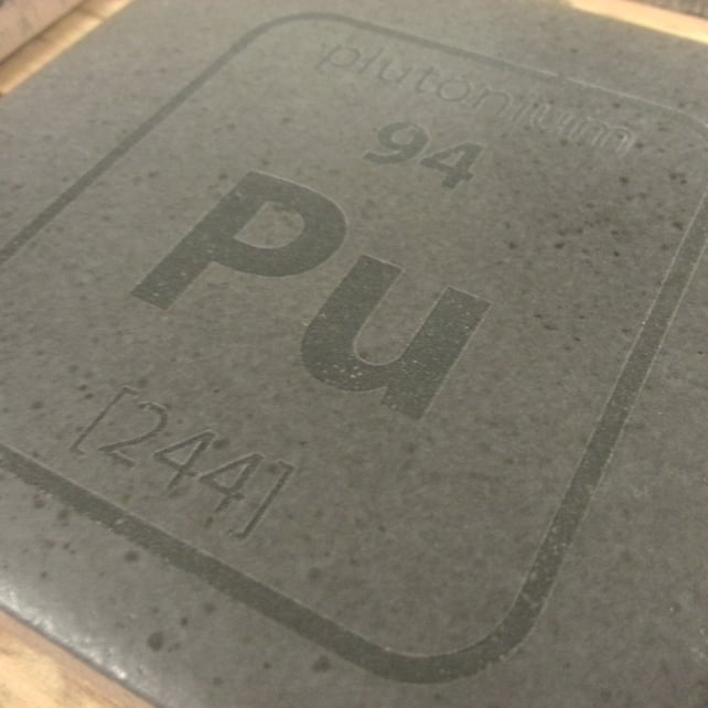 These luxurious looking black porcelain tiles have been engraved with elements of the periodic table. Ideal as a gift for science lovers and geeks alike.