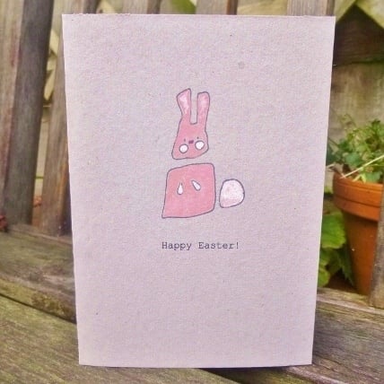 Cute A6 single Easter card, hand-painted onto eco-natural card, with my cute Bashful Bunny original design. Blank for your own message inside. One supplied, please also see my cards packs.
