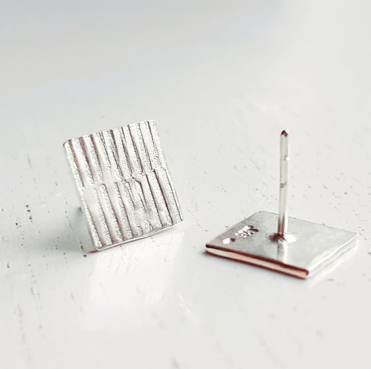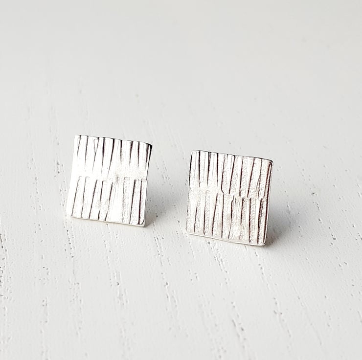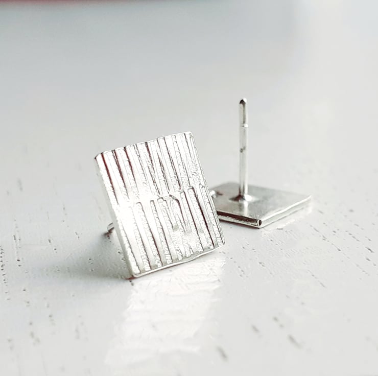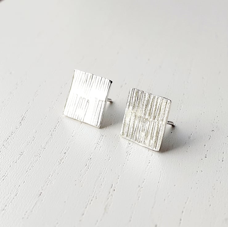 Square stud Sterling Silver earrings textured hammered & tumbled