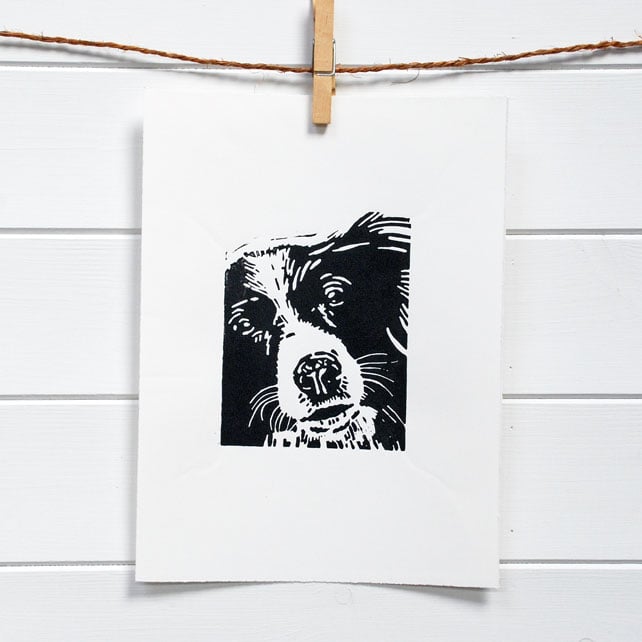 Dog Art - 'Collie Dog' - Original, hand pulled Linocut Print, printed on hand press in black ink. Signed and titled in pencil by the artist.