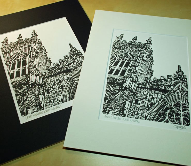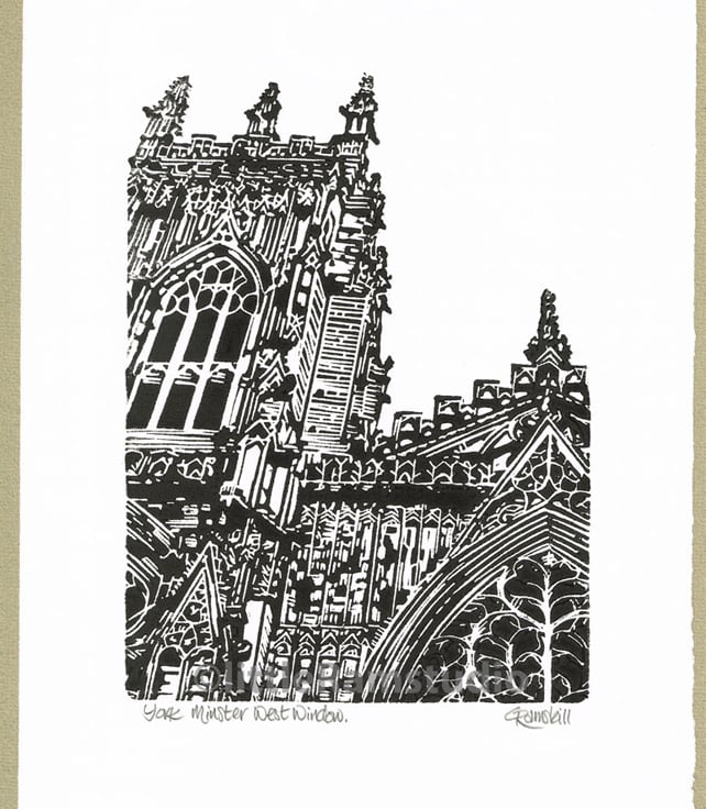 'York Minster West Window' - Original, hand pulled Linocut Print, printed on hand press, available in black ink. Supplied in a cream mount. Signed and titled in pencil by the artist.