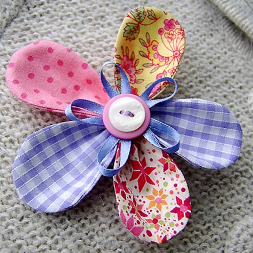 Keywords: flower brooch, flower pin, flower corsage, handmade flower, pretty, fabric corsage, gingham, floral, polka dot, spring, summer