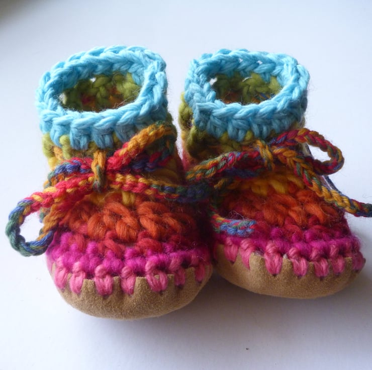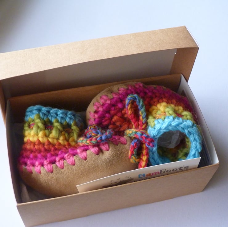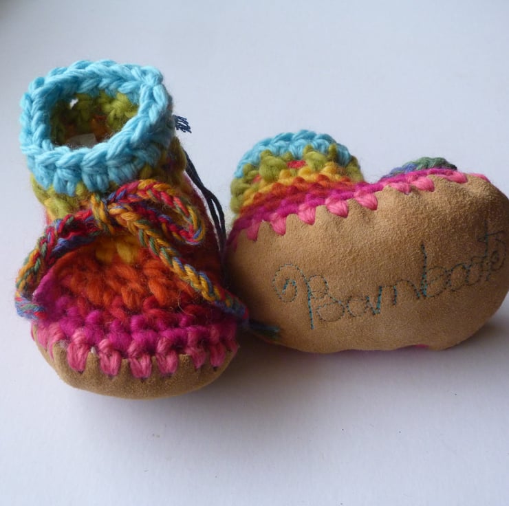 These funky little boots will keep your baby's feet snug and warm and add a dash of colour to any outfit. Warm woollen fabric with stretch for comfort and growing room plus a soft suede non-slip sole. A perfect gift for a baby boy or girl.
