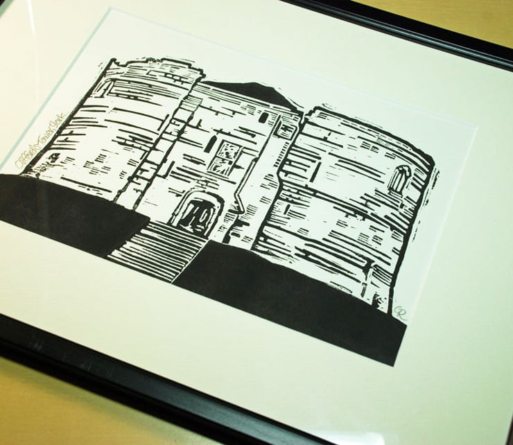 'Cliffords Tower, York' - Original, hand pulled Linocut Print, printed on hand press, available in black ink. Supplied in a cream mount. Signed and titled in pencil by the artist.