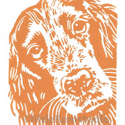 'Cocker Spaniel Dog' - Original, hand printed linocut, printed on hand press in tan ink. Signed and titled in pencil by the artist.
