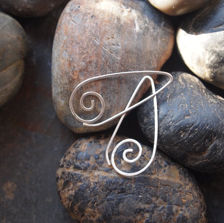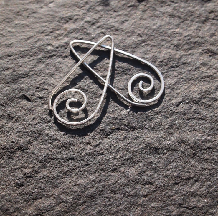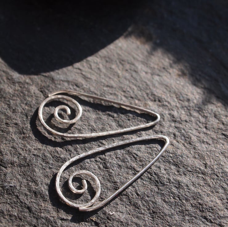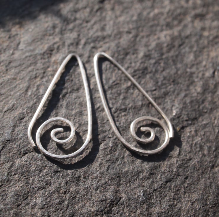 Understated, comfortable and modern - these handmade sterling silver earrings are formed in one piece. They have a curl of silver at the bottom and have been gently hammered to add texture.