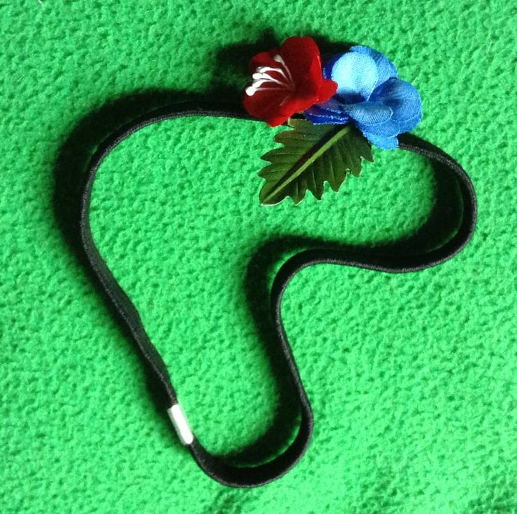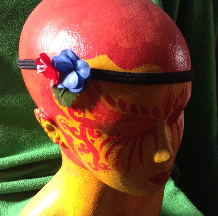 Now half price! These vintage artificial flowers, hand-made using original Victorian tools and methods by David Bloor, one of the last of the flower-makers, were stored in a drafty attic after he retired, to be finished, adapted and rethought some years later by Tom Bloor and his daughters Joanna and Louise. Made of dyed lawn, painted plaster seeds, paper and wire, the flowers have been wired onto an elasticated black and silver hairband.