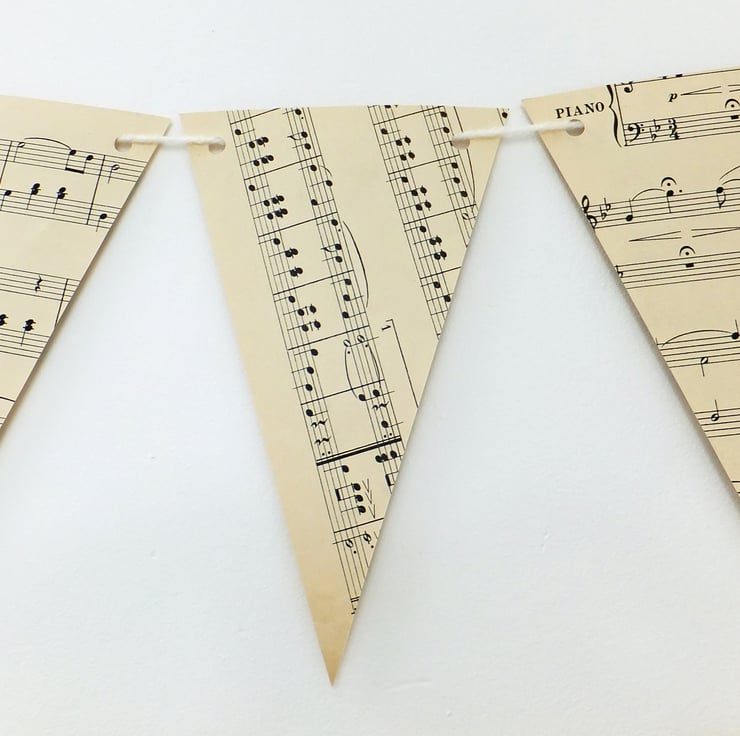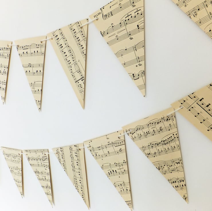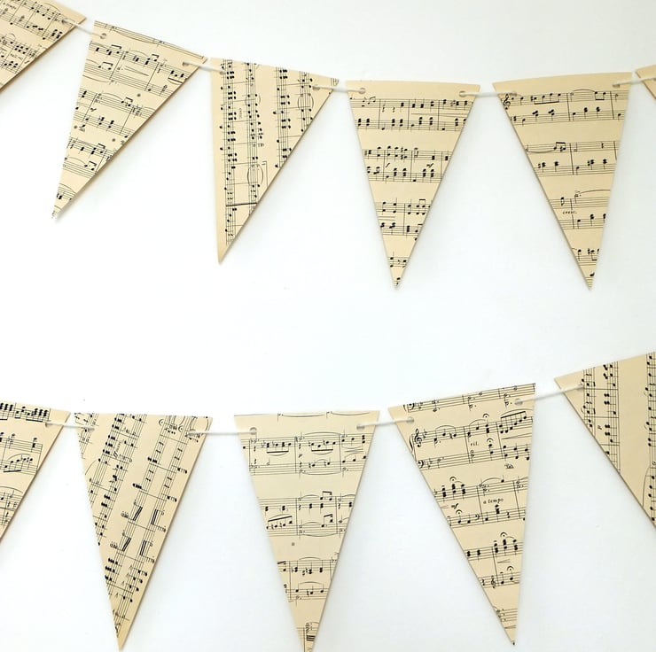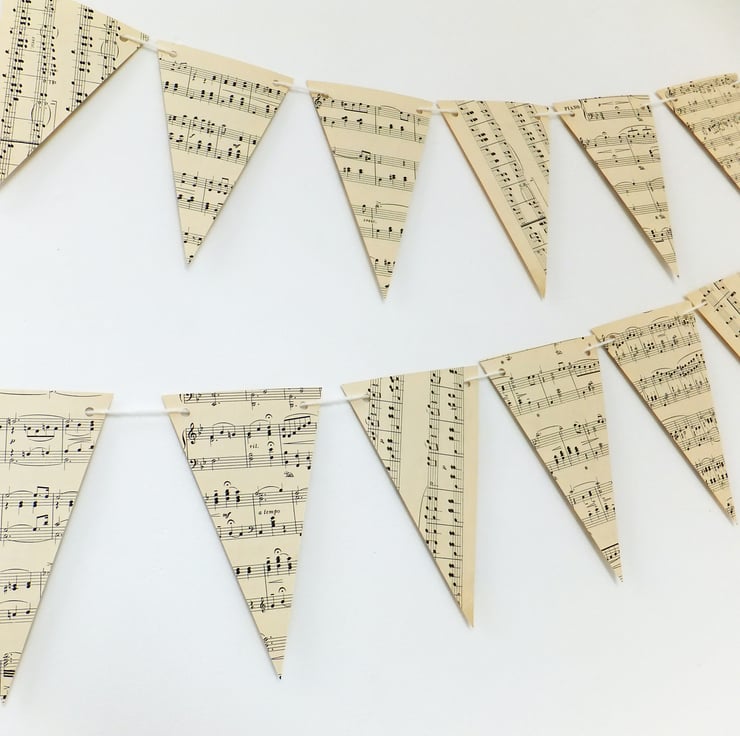 This lovely Music bunting has been up-cycled from a much-loved vintage music score for light opera waltzes! The garlands would look lovely in any home and would be wonderful wedding decor.