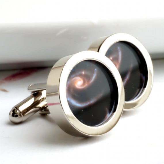 Space spiral cufflinks, wear views of our amazing galaxy on your sleeve. Rich in colour and unusual in design.