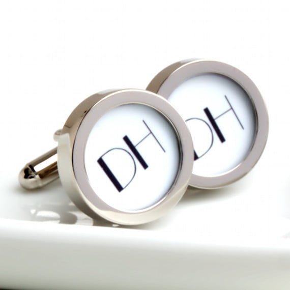 Monogrammed cufflinks in a 1920s style with 2 initials with white letters on a black background. Also available with black letters on a white background, let me know if you would prefer this option. Monogram cufflinks make a very personal gift for someone special and never go out of style. These cufflinks are also a lovely choice for members of your wedding party.
