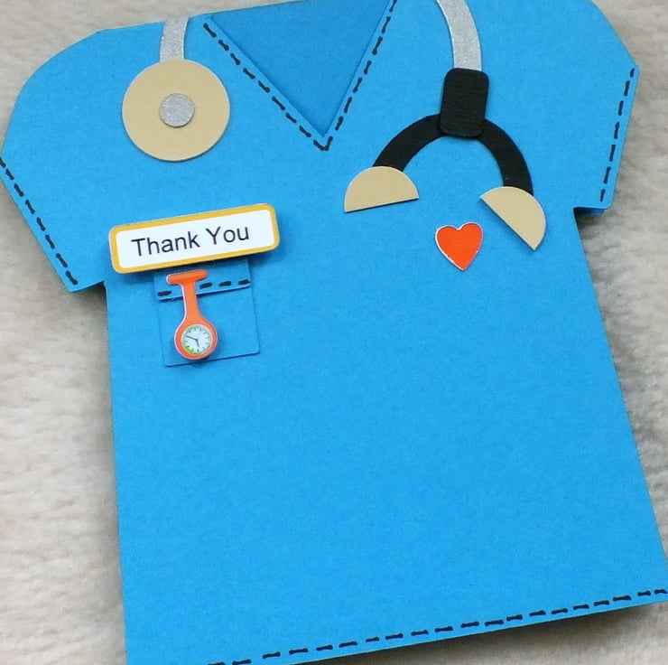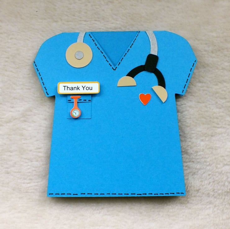 This card will stand out from the rest. Say a special thank you with this medical, uniform shaped card, with stethoscope, pocket and heart accents. Approx. 5.5"x5.5" in size, it has been left blank inside for your own message.