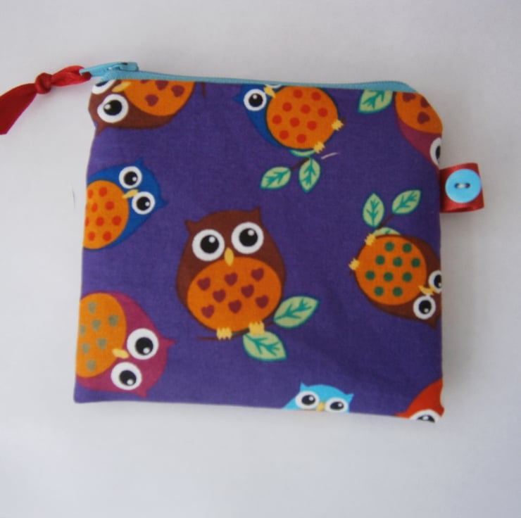 Pretty little owls printed fabric coin purse, perfect for your coins, notes and cards.