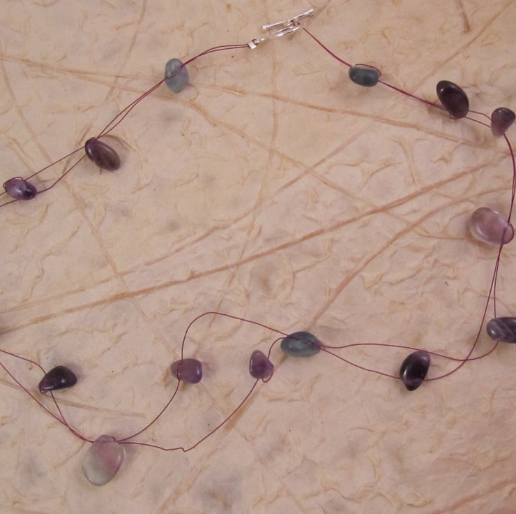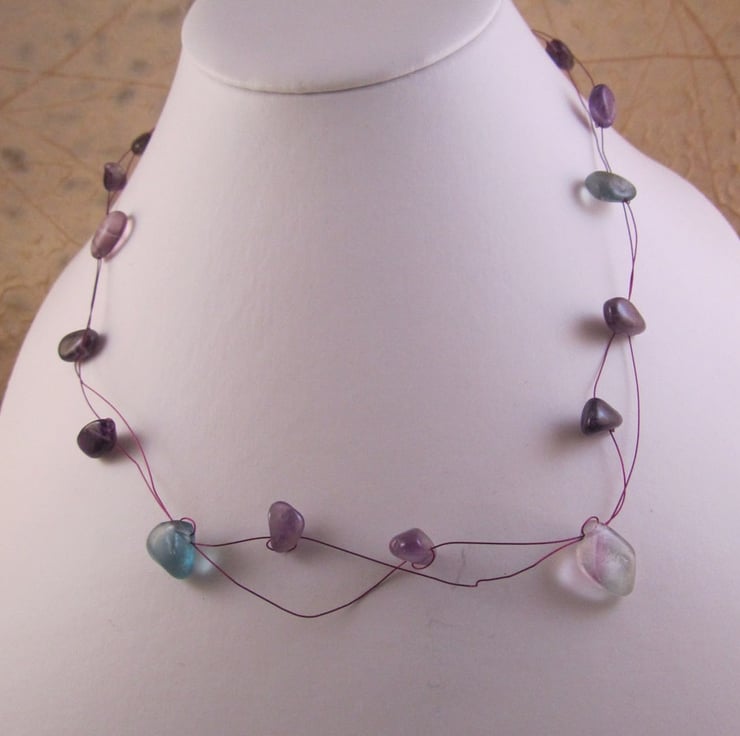 This beautiful purple amethyst and green flourite short necklace is made with real amethyst gemstones and real flourite gemstone nuggets.