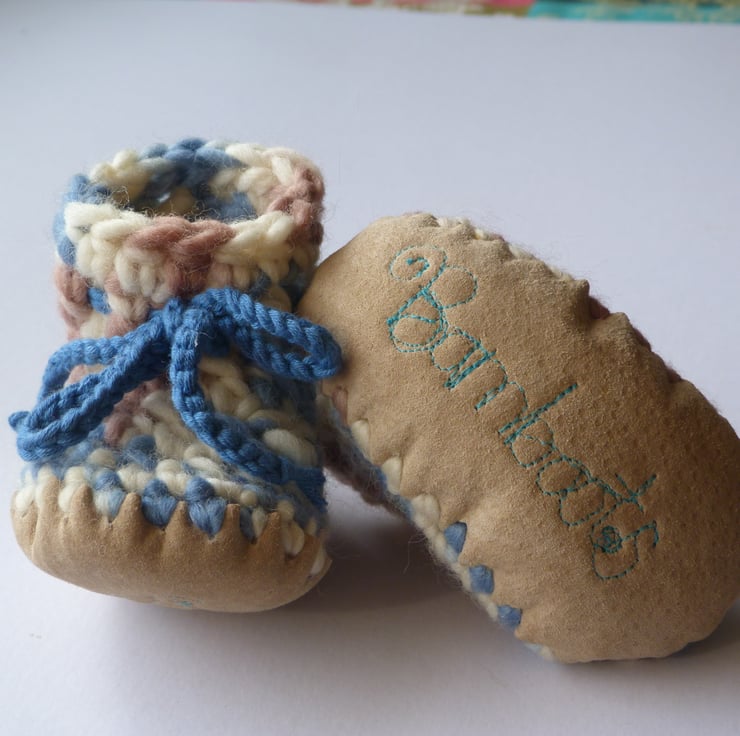 Soft, chunky Norwegian wool hand crafted baby boots.