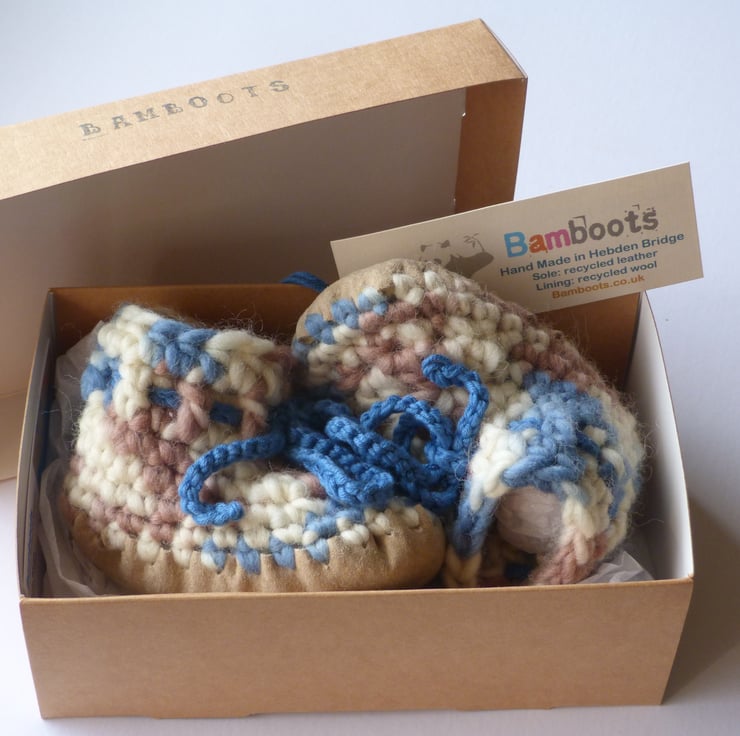 These funky little boots will keep your baby's feet snug and warm and add a dash of colour to any outfit. Warm woollen fabric with stretch for comfort and growing room plus a soft suede non-slip sole. A perfect gift for a baby boy or girl.