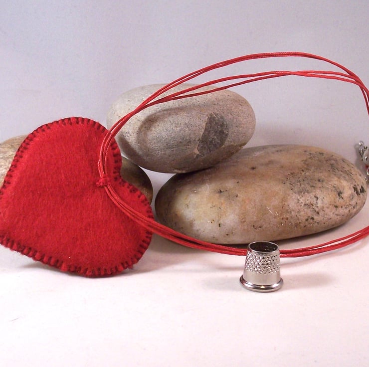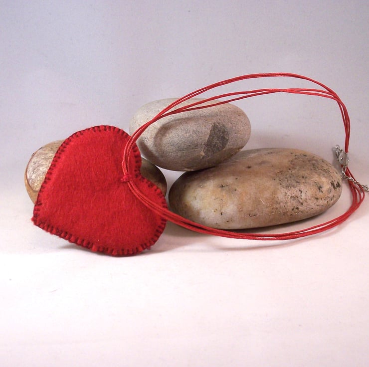 Felt backing, handstitched onto waxed cotton cord with a metal lobster claw fastening.