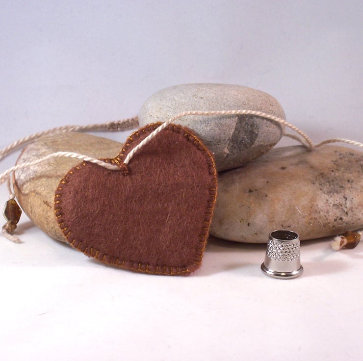 Felt backing, handstitched onto waxed cotton cord with slip knot and glass bead fastening - this simply slips over the head and you then shorten it to your preferred length.