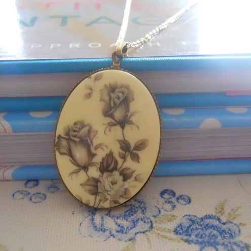 This is a stunning large vintage rose cameo pendant in a antique brass setting. If you like vintage style jewellery then this is definitely one for you! ♥♥♥