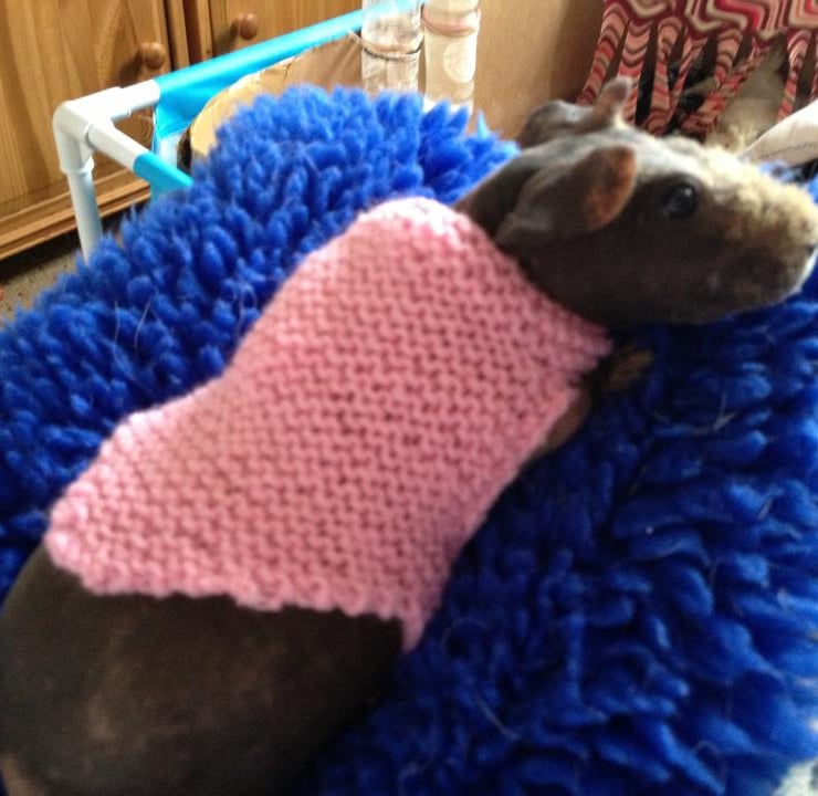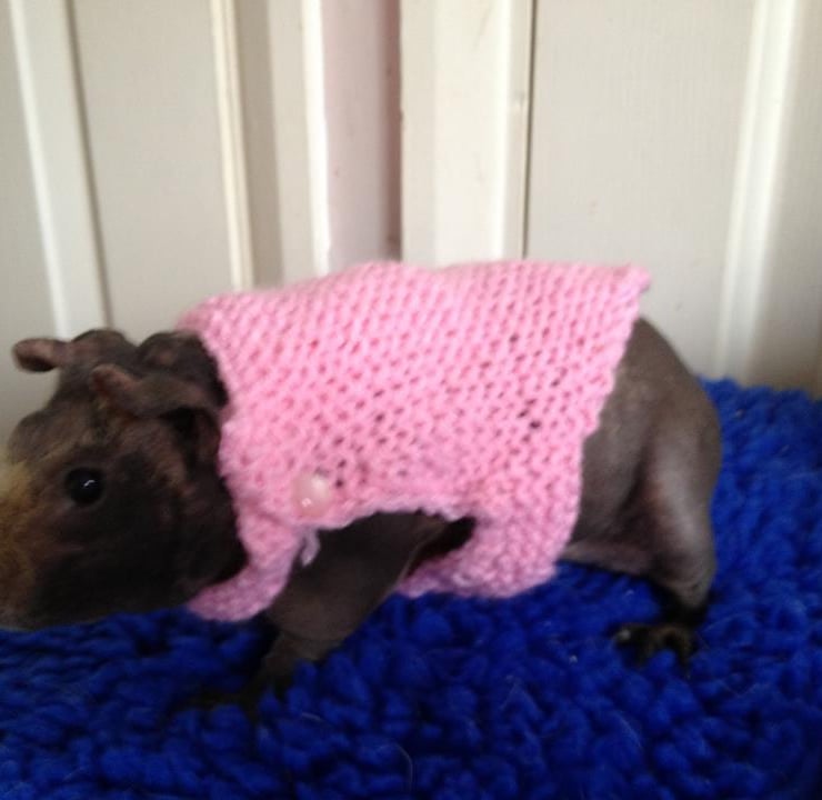 A customer had a hairless Guinea Pig that was really suffering in this cold weather and this little coat now keeps her very warm.