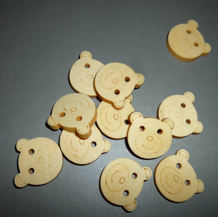 A set of 6 buttons. These buttons have no coatings or varnishes allowing you to decorate, or stain them to your own design to match a particular project.