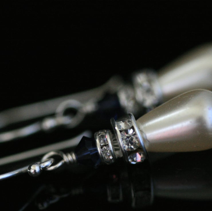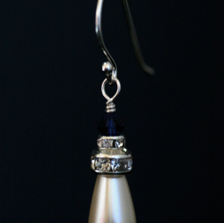 Handmade earrings made with sterling silver fittings, crystal rhinestone rondelles, ivory crystal pearl drops and Swarovski crystal beads in the colour of your choice.