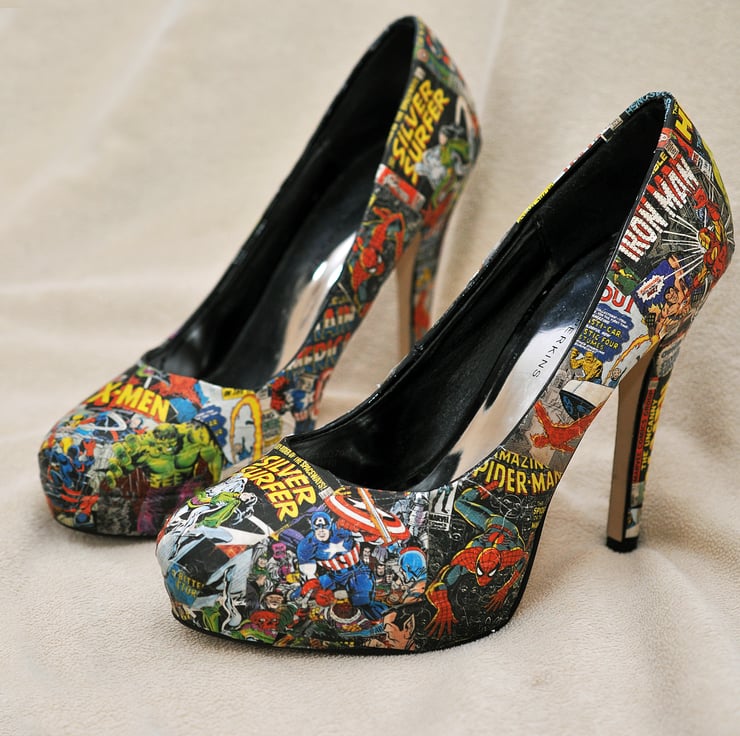 I love marvel, and I love shoes. Sick of buying trainers and wellies designed for little boys I decided to make something a little more grown up.