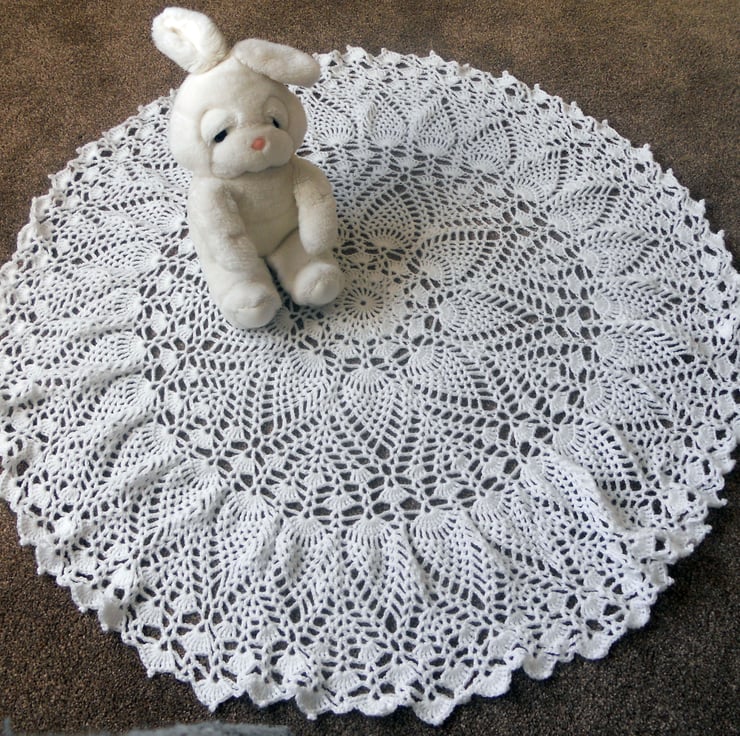 White crochet circular shawl ideal for babies for home decoration