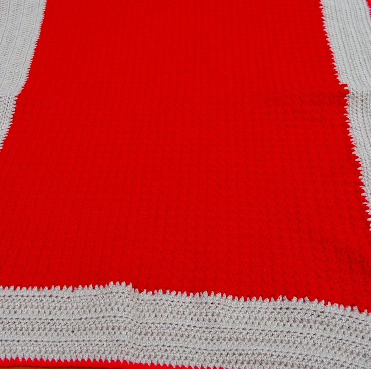 This small blanket/throw has been crocheted in 100% Acrylic yarn so can be washed either by hand or via a washing machine on a 40% wash cycle. It can be used as a lap blanket, baby blanket or pet blanket.