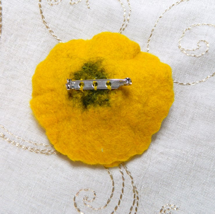 Made from soft merino wool this handmade felt brooch/ pin adds a beautiful touch to any outfit. It has a simple and secure fastening on the back and securely glued black sequins complete the focal point.