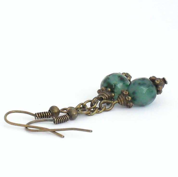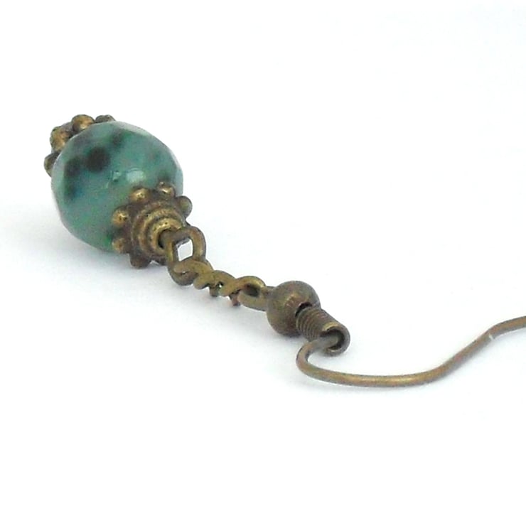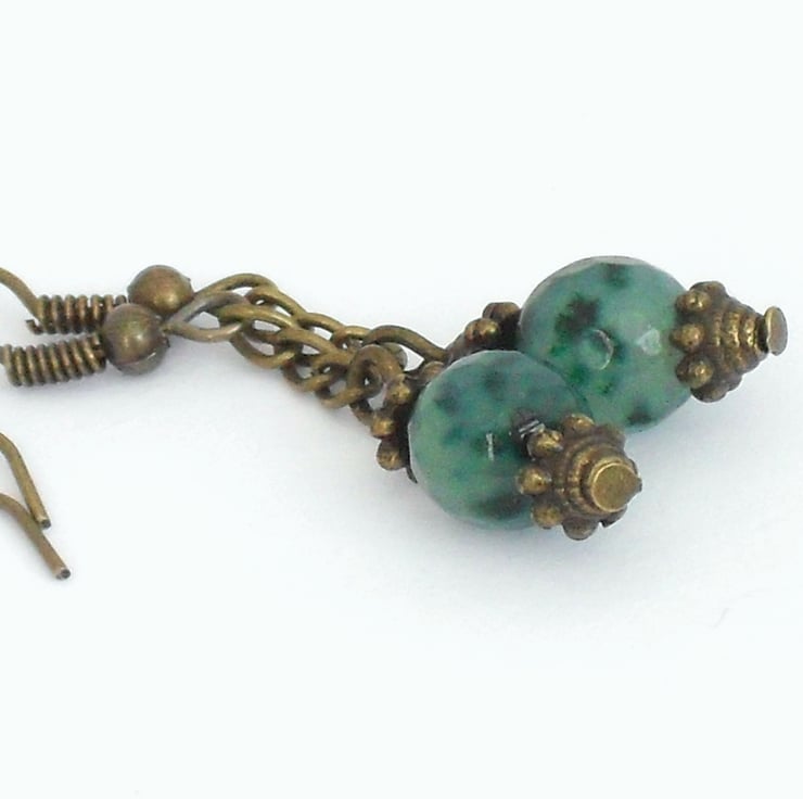 I have hung them with bronze beadcaps on a small amount of bronze chain, on bronze earwires.