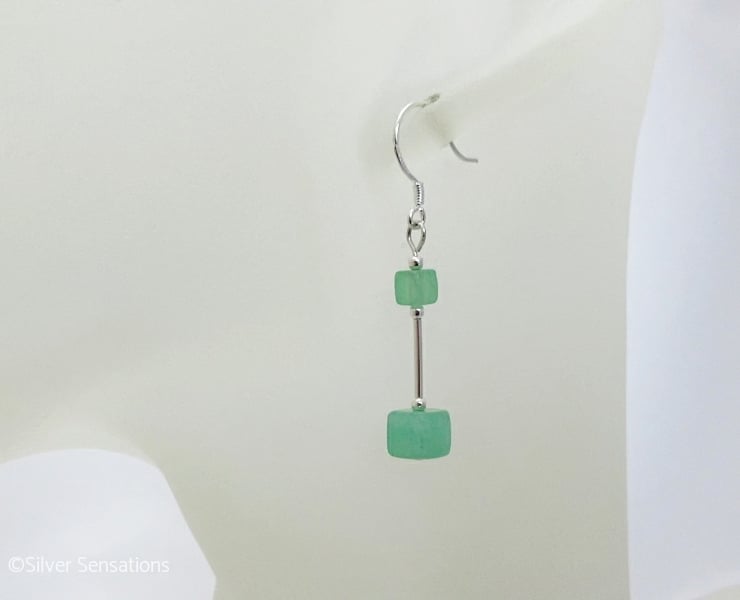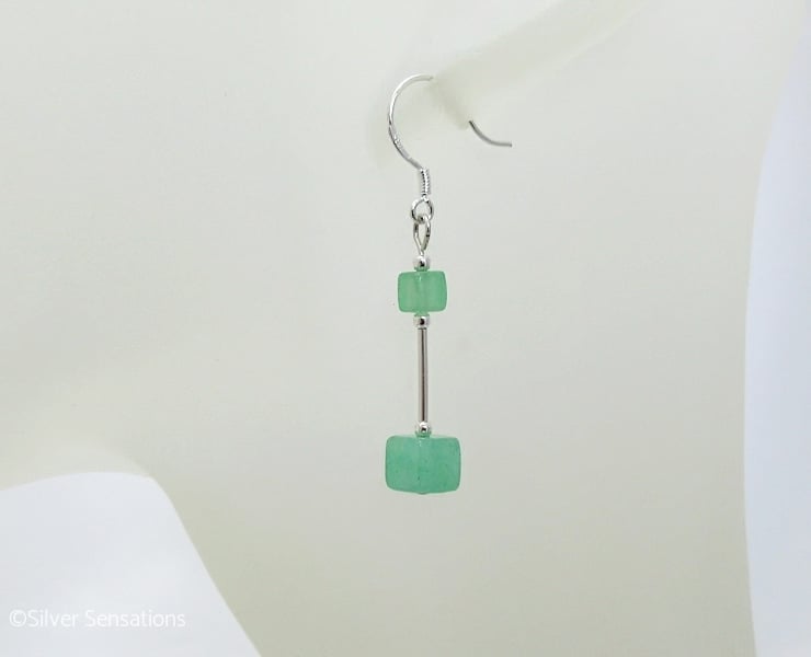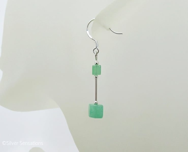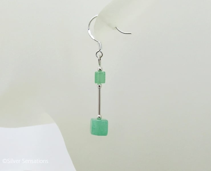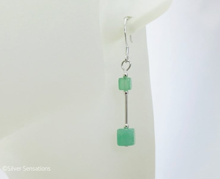 These hand made designer earrings feature brighter Green Aventurine cube beads which are 6mm & 4mm in size.
