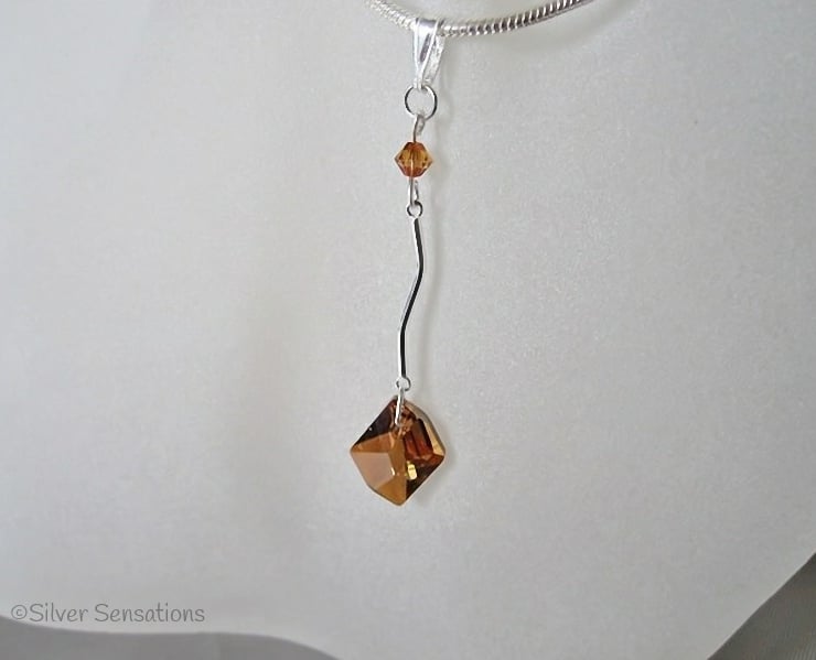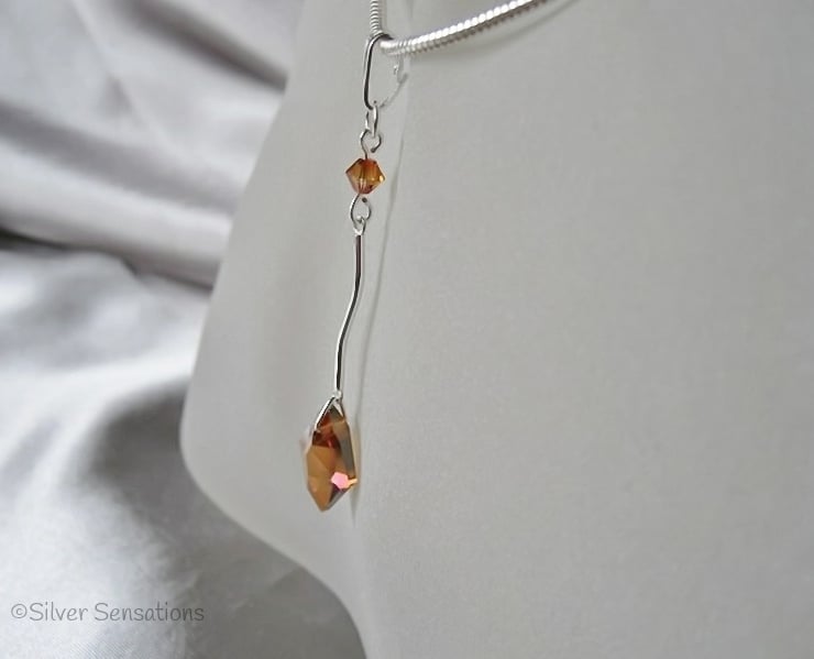 This elegant pendant has been uniquely designed and hand crafted using an unusually shaped and faceted copper coloured Swarovski Cosmic Crystal.