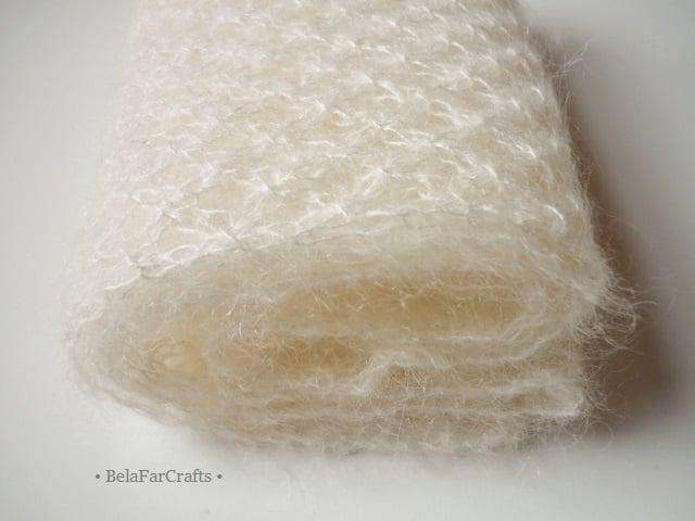 100% natural kid mohair and silk yarn in ivory color. Mohair easily absorbs and releases moisture; it is therefore comfortable to wear in both cold and hot weather.