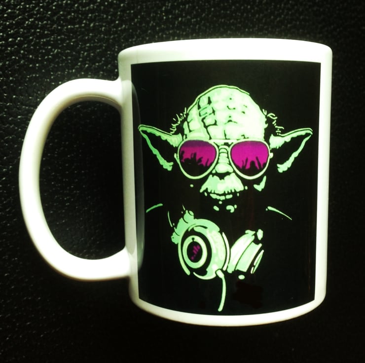 The striking image is printed on one side of the mug. Sublimation Printed to order so you can have a name or slogan added FREE if required. Starwars font style.