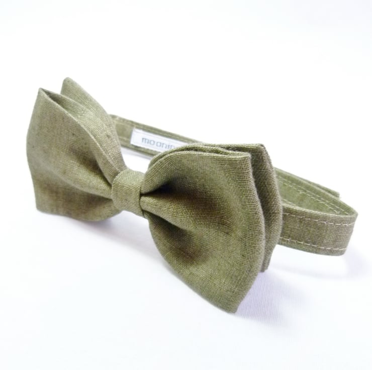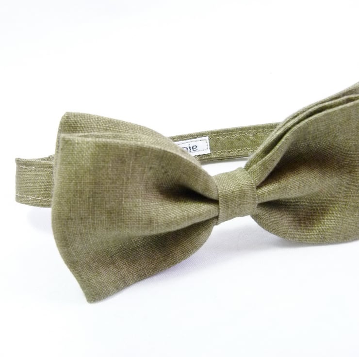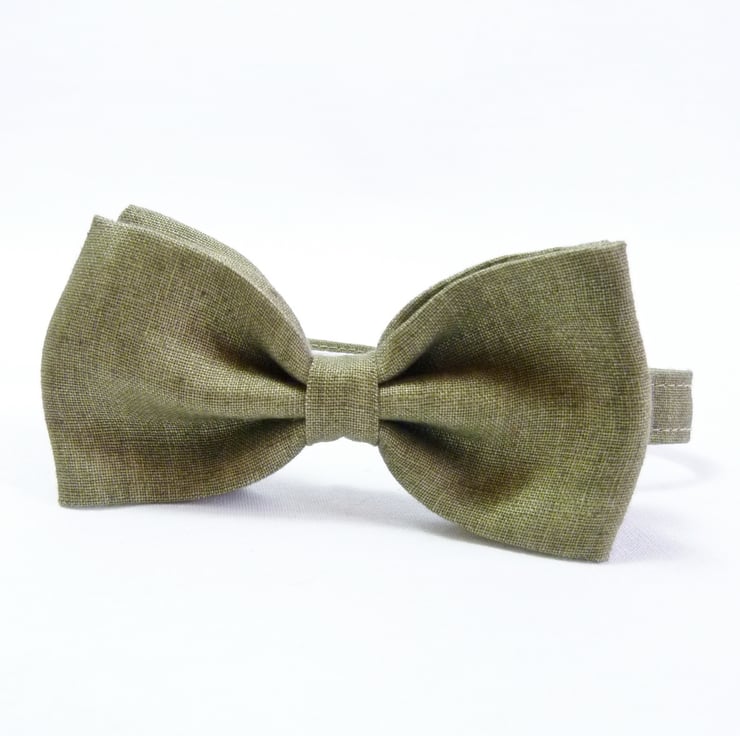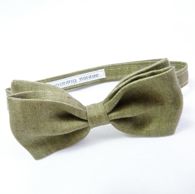 As per convo's, 6 x bow ties handmade from olive green Irish Linen