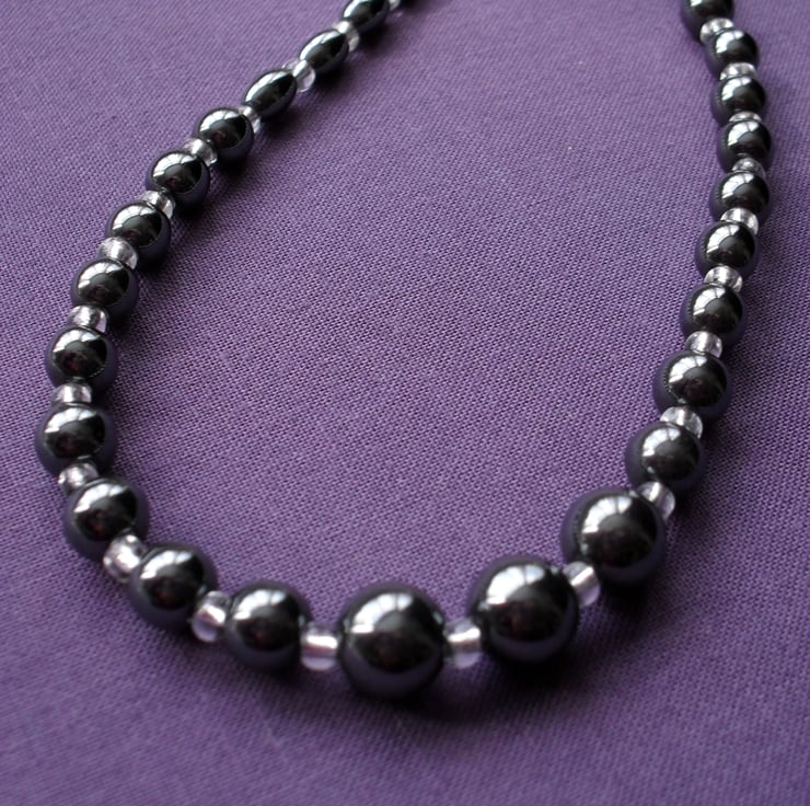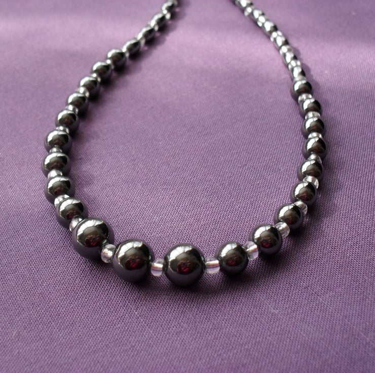 Round haematite beads measure approx 8 mm and 6 mm.